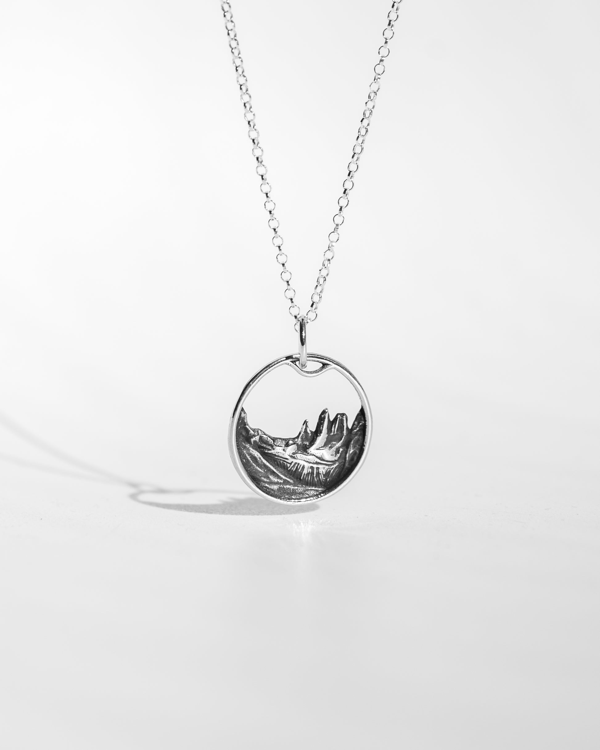 Imponentes e indomáveis, Las Torres são o coração do Parque Nacional Torres del Paine, no Chile. Este colar foi inspirado em sua silhueta marcante, esculpida pelo tempo e pelo vento patagônico. Uma homenagem à natureza bruta e à força de quem escolhe caminhar por ela.