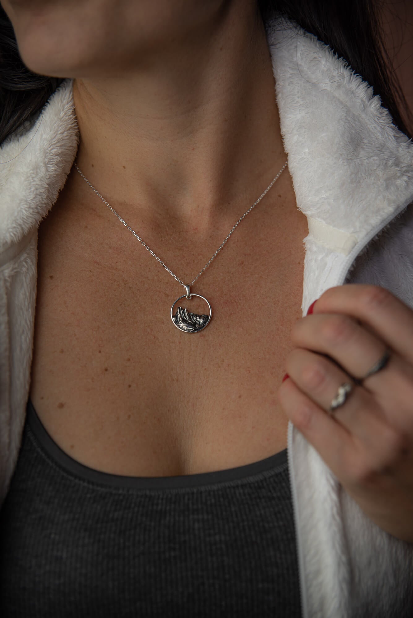 As Torres Vajolet, com suas formas esculpidas pelo tempo, são um ícone dos Alpes italianos. Este colar traz a essência dessas torres verticais, um verdadeiro símbolo da escalada alpina.