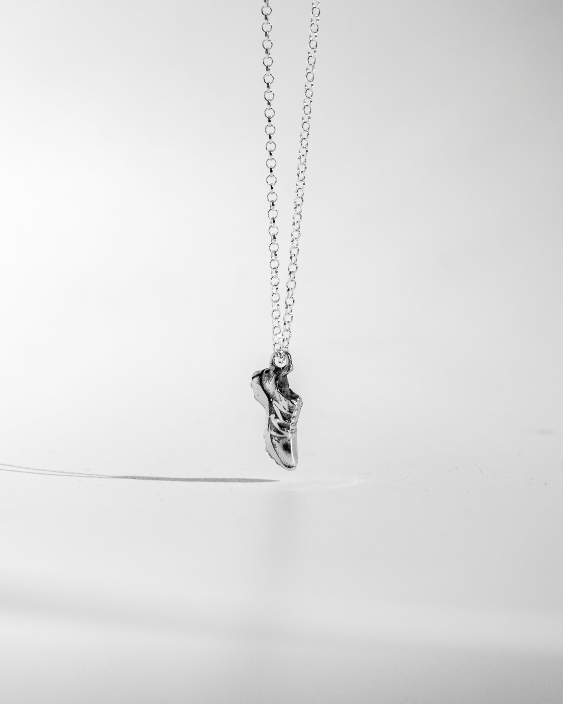 Desenhado com base em um dos modelos mais icônicos do trail running, este pingente de tênis de montanha em prata é uma homenagem a quem escolhe a trilha em vez do asfalto. Com sola agressiva e silhueta robusta, ele representa os corredores que não fogem da chuva, do barro ou das subidas.