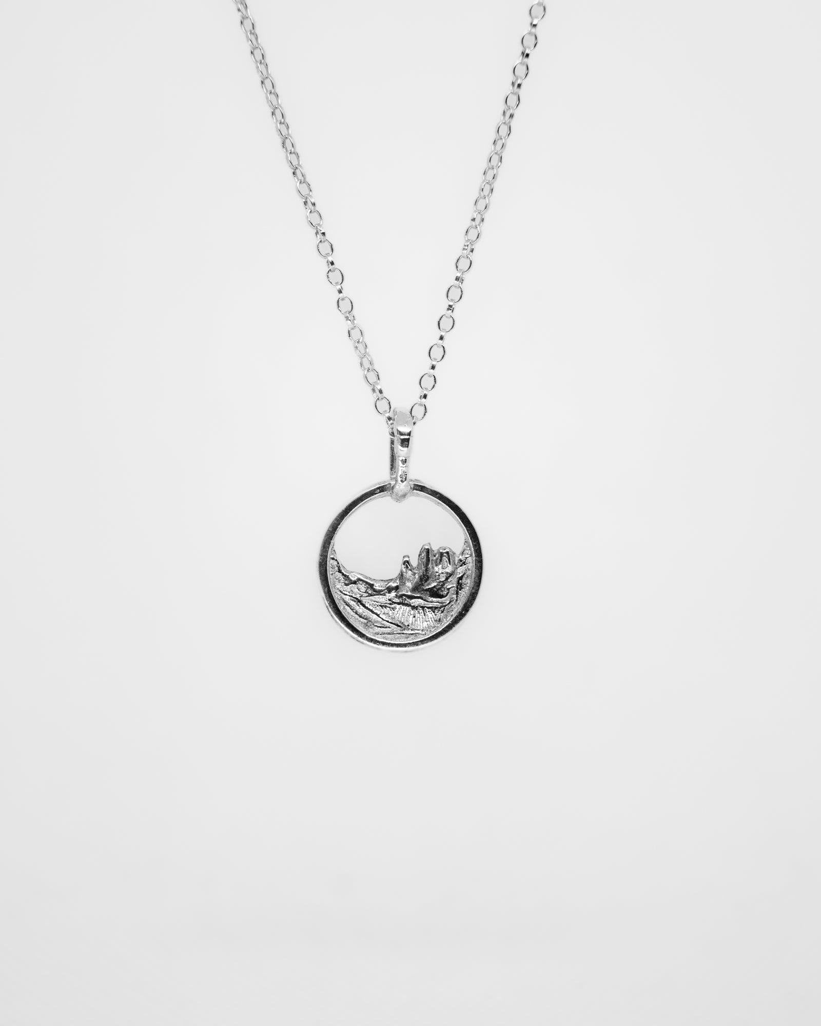 Inspirado nas formas inconfundíveis de Torres del Paine, este colar traduz a grandiosidade da montanha em um gesto contido.